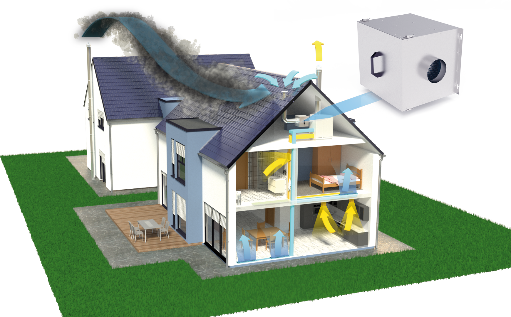 Die mit Rauchen belastete Außenluft kann je nach Witterung und Windrichtung von KWL-Anlagen angesaugt werden. Die üblichen Standardfilter in KWL-Anlagen sind i.d.R. nicht in der Lage den Eintrag von Rauchen und Gerüchen in Wohngebäude zu verhindern. Hier finden sich in der Regel Filter der Klassen ISO Coarse und ePM2.5. Leider erreichen viele als ePM1 deklarierte Filter die nominelle Klasse designbedingt meist nicht unter den Einsatzbedinungen. Gegen Kaminrauch und -gerüche sind die üblich verbauten Filter nicht oder nur sehr eingeschränkt wirksam.So kann schnell der eigene Kamingeruch oder der des Nachbarn über die Zuluft eingetragen und im Haus verteilt werden. Neben der Geruchsbelästigung werden auch erhebliche Mengen von Feinstaubpartikeln angesaugt, was die Qualität der Innenraumluft erheblich beeinträchtigt.