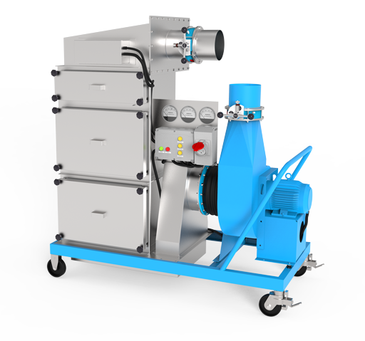 Mobiles Filtersystem für Absaugung von Gasen, Rauchen und Partikeln bzw. zur Sterilluftversorgung.