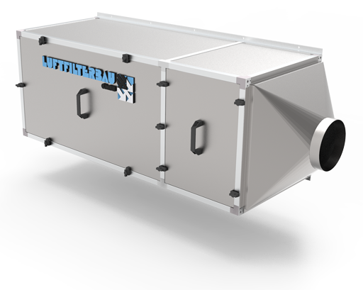 Where only dust or aerosols have to be filtered, active coal filters and electric heating elements are not required. Due to the higher airflow capacity of dust filters compared to the active coal filters the airflow speed can increase to twice the speed of the above configuration, at the same basic conditions as above. This will reduce the time required substantially.
