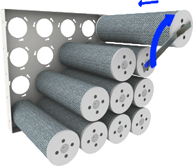 To ensure easy fitment of filter rolls they are equipped with a guiding facility. The end of the roll is fitted with a piece of hardboard to enable technicians to remove the used filter roll without disturbing the settled dust or waste in the filter material. The Hs-Matic-Filter media is fitted to steel piping, which has discs on either side. The Hs-Kleen-filter media is fitted to a hardboard pipe.