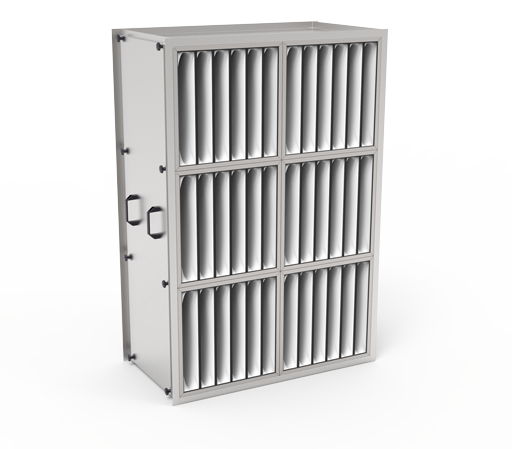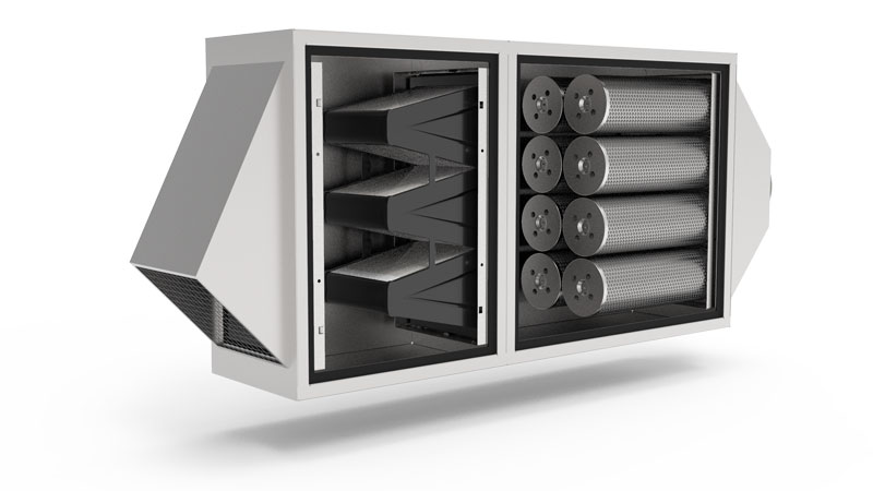Where gases, dust or aerosols have to be filtered, the most suitable filters to use are the highly effective Active Coal Cells combined with a pre dust filter module. Electric heating elements are used to reduce the humidity in order to increase the efficiency of the active coal filters.